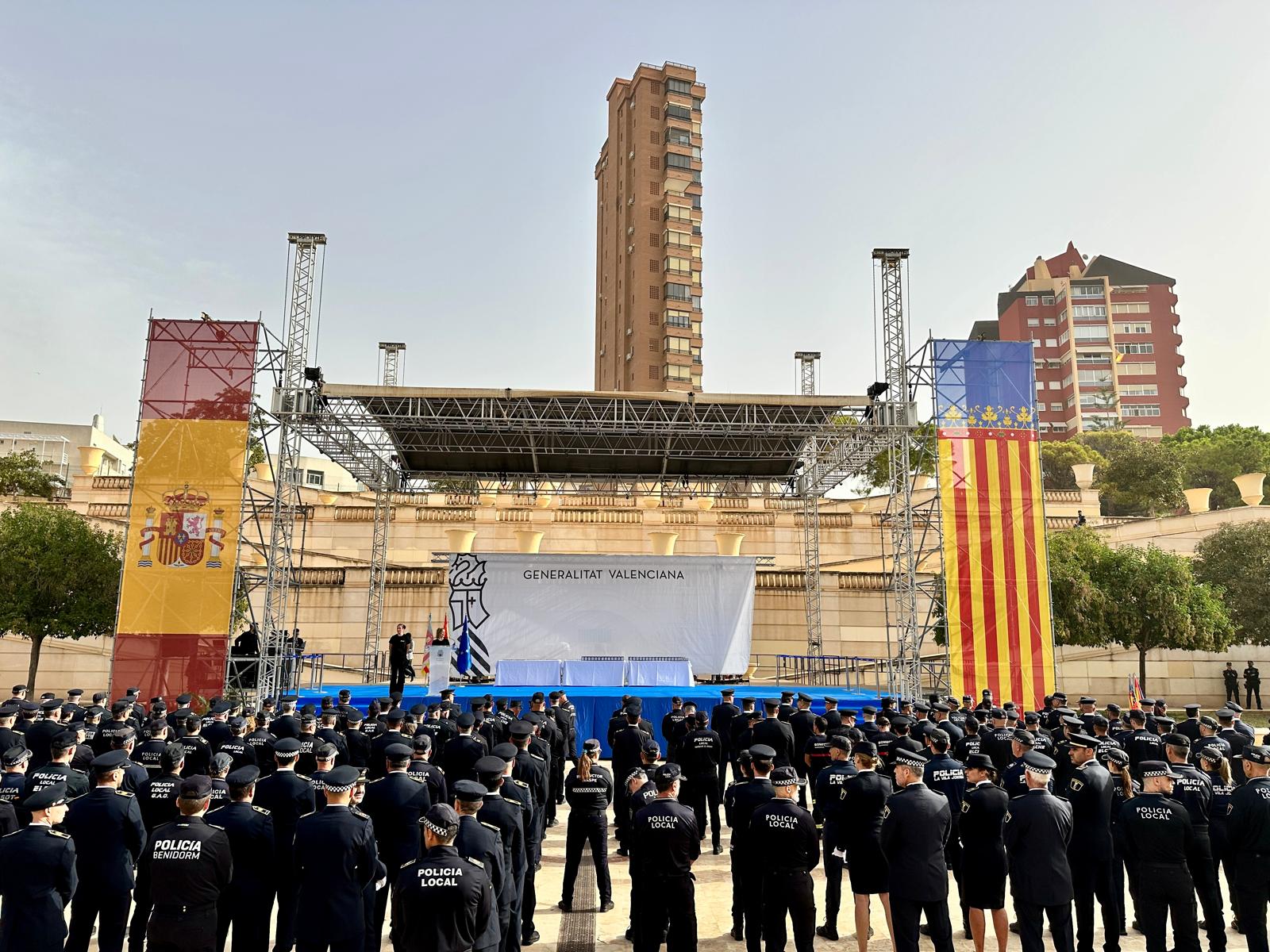El Parque de L’Aigüera de Benidorm acogió ayer el acto de entrega de condecoraciones a policías locales de la provincia de Alicante que han desarrollado acciones destacadas en los últimos años, organizado por la Conselleria de Emergencias e Interior.