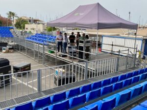 Todo listo para uno de los mayores espectáculos deportivos del momento. En la explanada de acceso y el parking del Club Náutico se levantan ya las gradas, cuadros de juego, pantallas gigantes y las pistas que acogerán este viernes y sábado el circuito profesional Herbalife 3×3 Series, prueba en la que competirán 14 equipos masculinos y 7 femeninos. El acceso es gratuito, limitado a un aforo que respecta escrupulosamente todas las normas anti-covid.