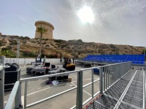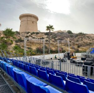 Todo listo para uno de los mayores espectáculos deportivos del momento. En la explanada de acceso y el parking del Club Náutico se levantan ya las gradas, cuadros de juego, pantallas gigantes y las pistas que acogerán este viernes y sábado el circuito profesional Herbalife 3×3 Series, prueba en la que competirán 14 equipos masculinos y 7 femeninos. El acceso es gratuito, limitado a un aforo que respecta escrupulosamente todas las normas anti-covid.