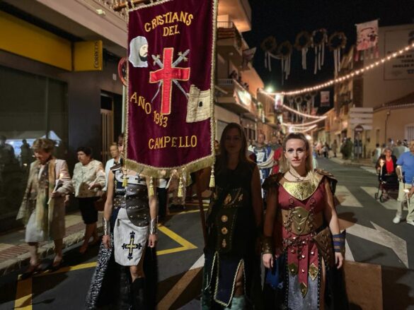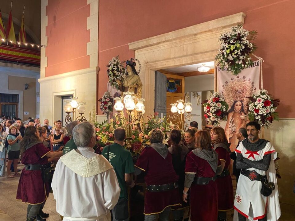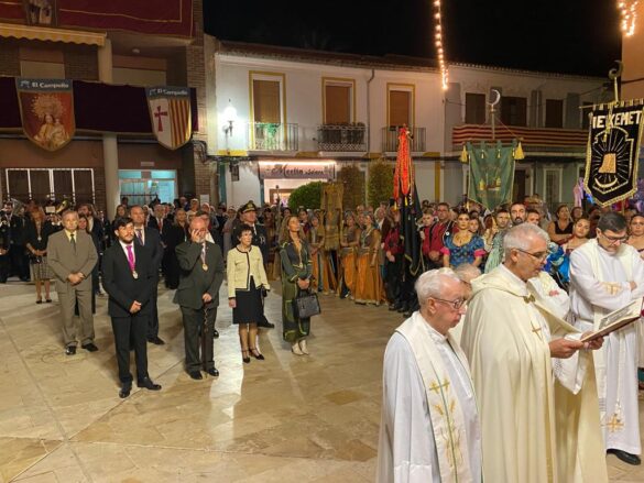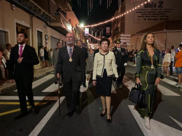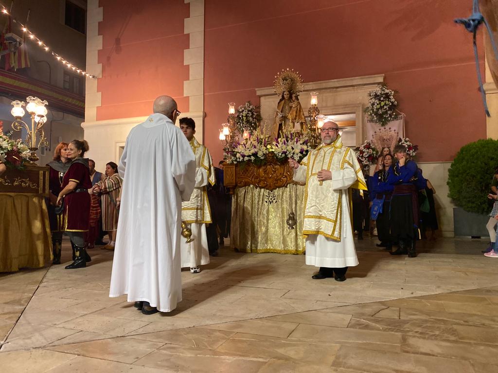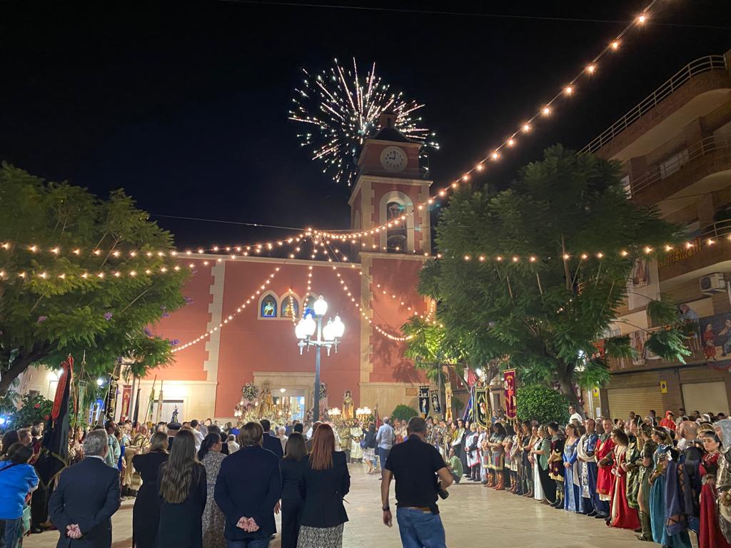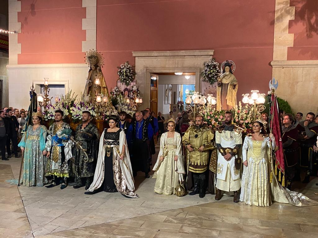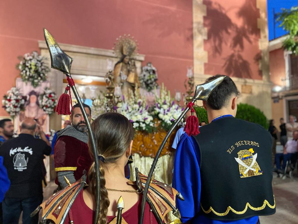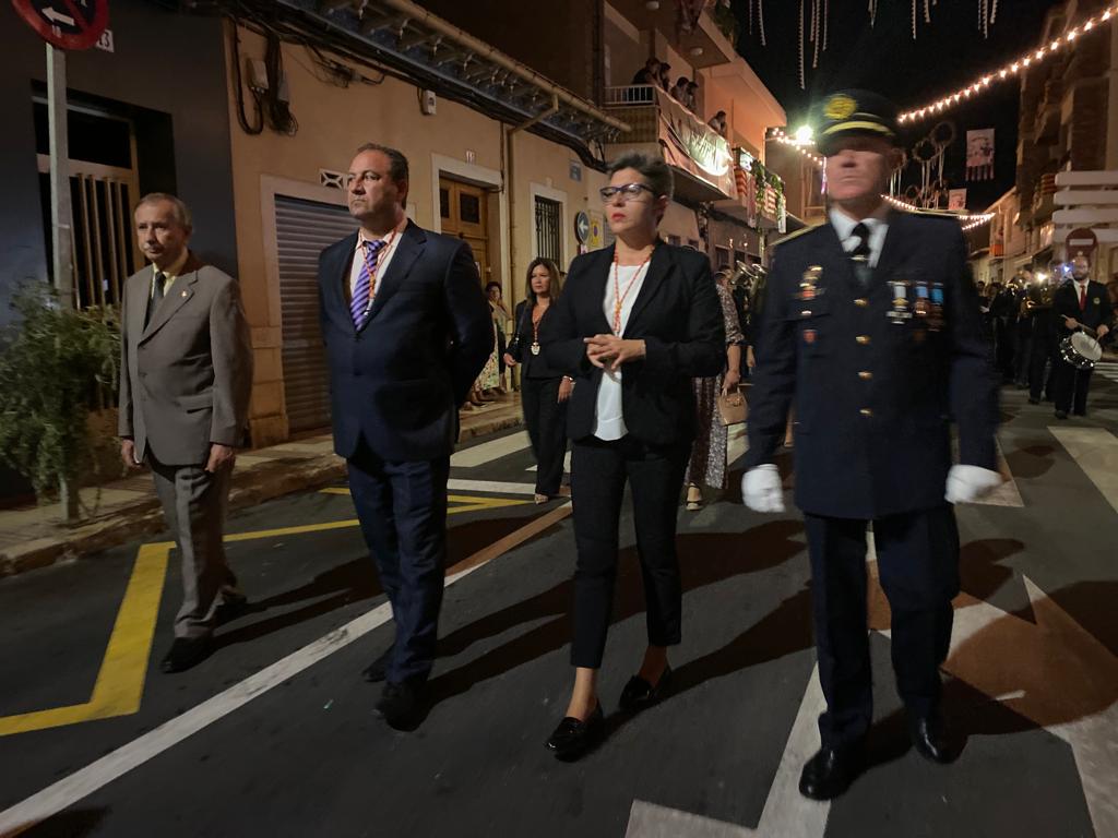 Fue el último día de las fiestas, con una tarde que arrancó a las 20:00 horas con la procesión de las dos imágenes del pueblo: la titular de la parroquia Santa Teresa y la patrona la Virgen de los Desamparados. La solemnidad primó, y las imágenes recorrieron las calles del municipio acompañadas por las autoridades y las capitanías con sus bandos festeros.
