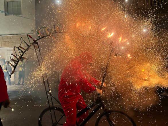 Anoche, El Campello iluminó parte de su centro urbano con un tradicional “correfocs” que, a cargo de la Colla Dimonis, hizo danzar a familias enteras en torno a las bengalas, los petardos y otros elementos pirotécnicos que definen una de las propuestas más esperadas en nuestras fiestas dedicadas a la Mare de Déu del Carmen.