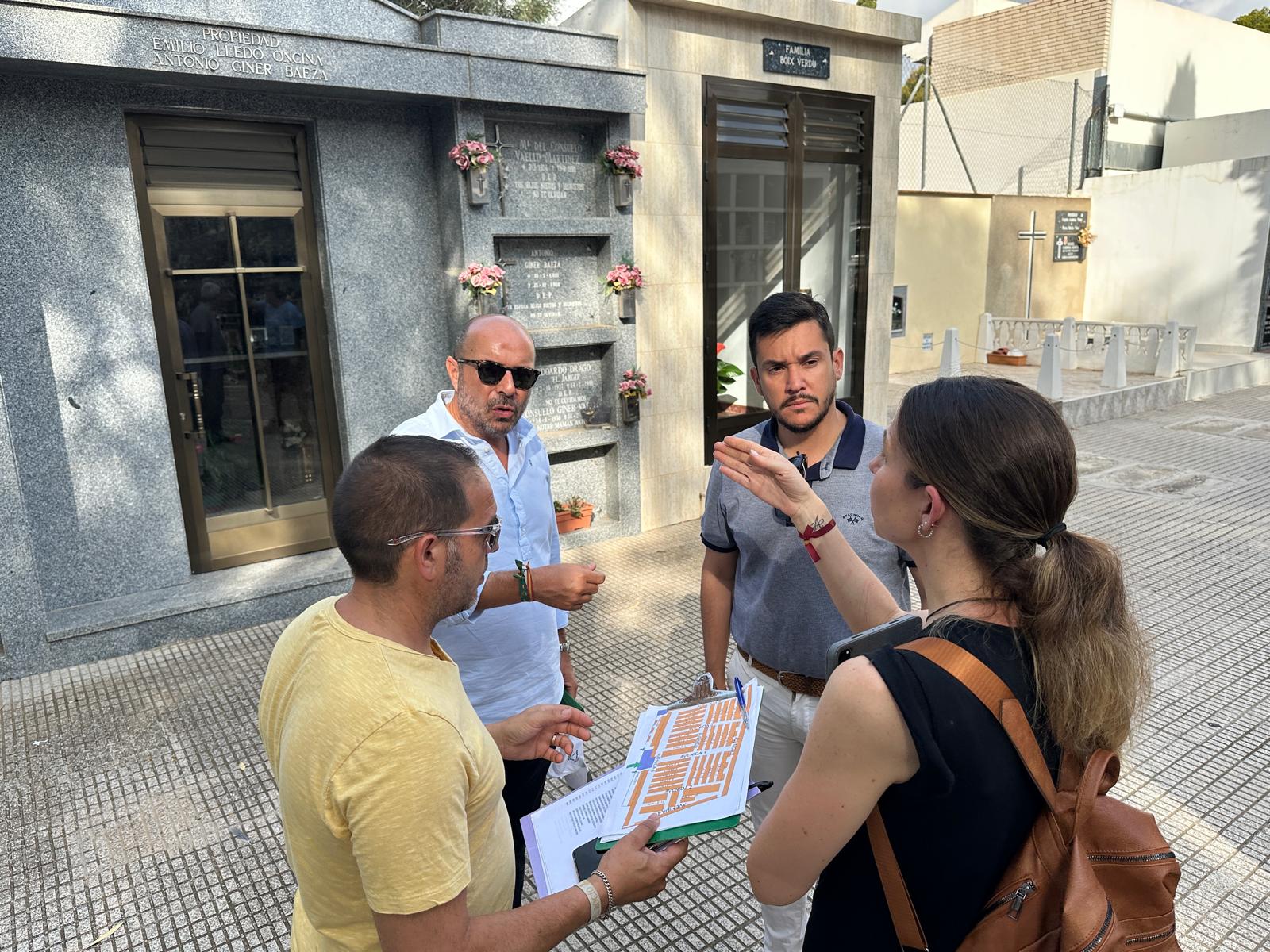 El trabajo es perseverante. Arrancó el 1 de julio, y finalizará en la segunda quincena de agosto. Se trata de la revisión, uno a uno, de todos los enterramientos del Cementerio Municipal de El Campello, tanto nichos como panteones y columbarios, en aplicación de la ordenanza municipal aprobada en el Pleno, que incluye un inventario concienzudo para elaborar un registro exacto, al objeto de poner en marcha los derechos funerarios y recuperar los espacios vacíos o de titularidad desconocida.