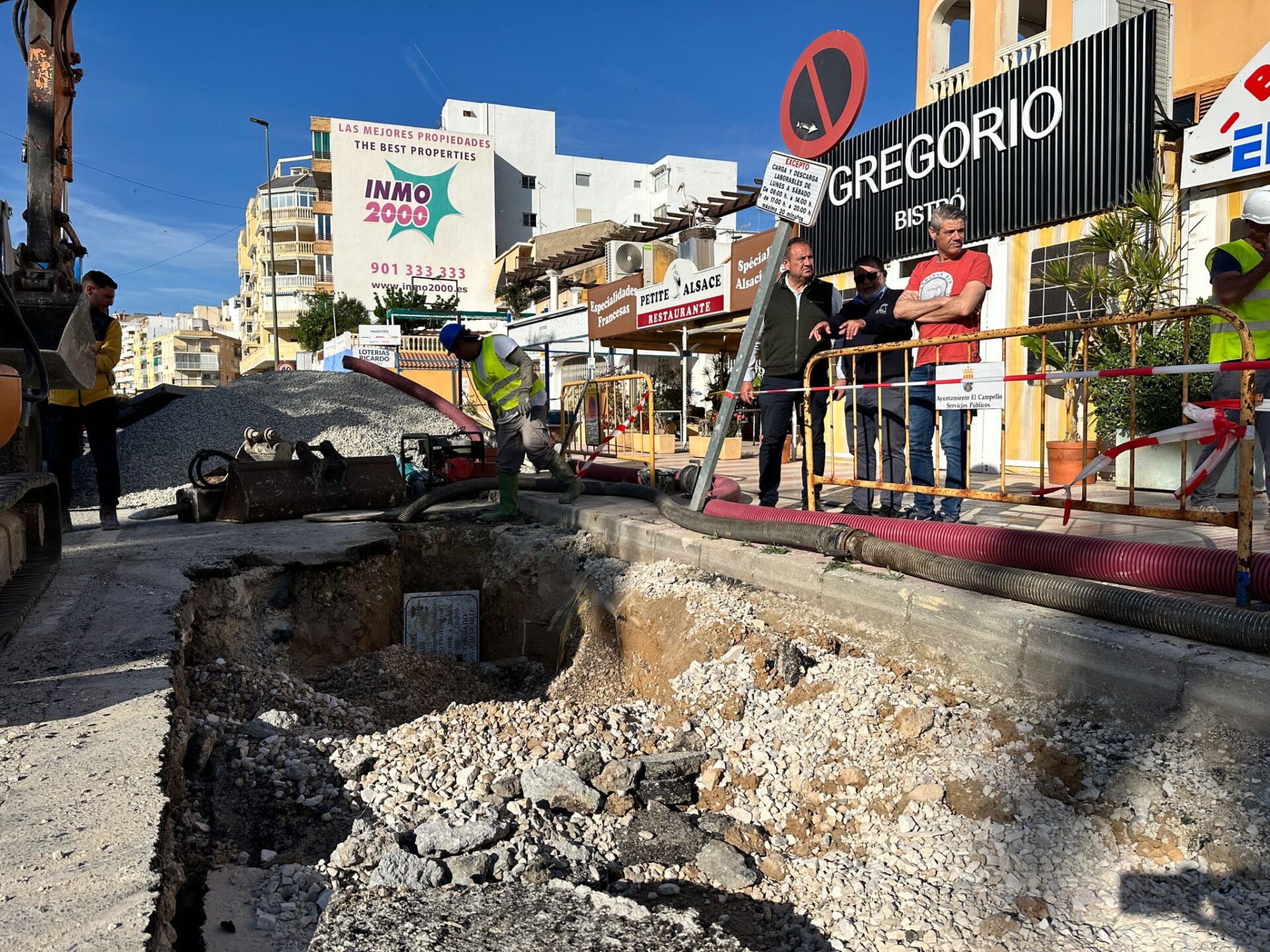 El pasado 17 de abril, el departamento de Servicios Públicos del Ayuntamiento de El Campello, que dirige el concejal Rafa Galvañ, recibió una comunicación alertando del hundimiento de la calzada y la rotura de parte de la conducción de saneamiento en la calle San Bartolomé, entre los números 115 a 117. Los técnicos comprobaron la gravedad de la avería, y determinaron que resultaba “absolutamente necesario” ejecutar obras por vía de emergencia para evitar vertidos de aguas residuales a la vía pública, la protección del medioambiente y la salud de las personas. Las obras, ya contratadas, comenzaron este mismo lunes, con un plazo de ejecución calculado de 10 días.