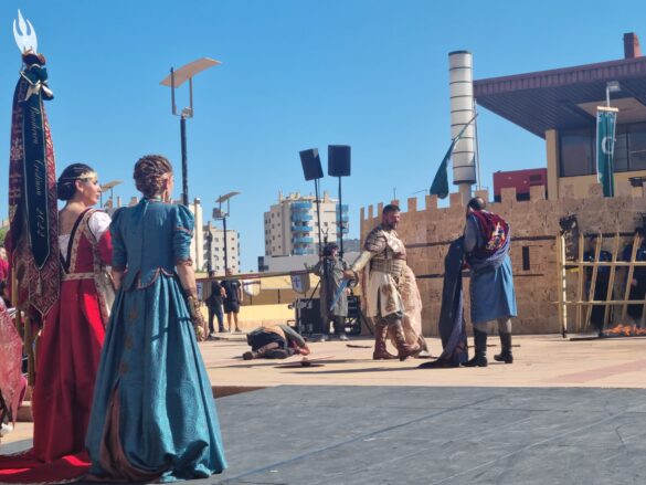 Caras boquiabiertas, niños sin perderse detalle alguno, y adultos emocionados. Son sentimientos que sólo son perceptibles con asistencia presencial. Un acto, el de esta mañana, que ha contado con dos protagonistas de excepción: los embajadores cristiano y moro, encarnados de forma extraordinaria por Adrián Soto y Alejandro Sánchez, cuyas actuaciones se recordarán por siempre por haber sido los artífices de la recuperación de unas fiestas que llevaban tres años sin celebrarse.