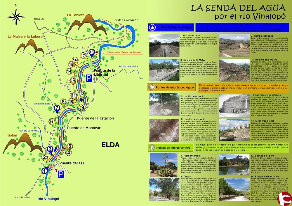 Los Amigos del Castillo han editado un folleto explicativo que recorre el cauce del río Vinalopó desde el puente del CEE hasta el de la Libertad, explicando los elementos arquitectónicos y patrimoniales, los puntos de interés del agua, geológicos y la flora.
