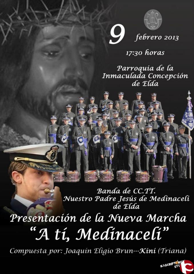Adjuntamos cartel informativo del evento que realizará la Cofradía de Nuestro Padre Jesús de Medinaceli, de Elda, el próximo 9 de Febrero e 2.013, para que sea divulgado en sus respectivos medios.