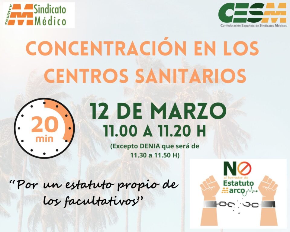 Buenos días, el Sindicato Médico de la Comunidad Valenciana CESM-CV OS HA CONVOCADO HOY AQUÍ para manifestar nuestro rotundo rechazo al borrador del Estatuto Marco propuesto por el Ministerio de Sanidad. Esta movilización forma parte de la campaña de protestas en defensa de nuestros derechos laborales y de la calidad del sistema sanitario.