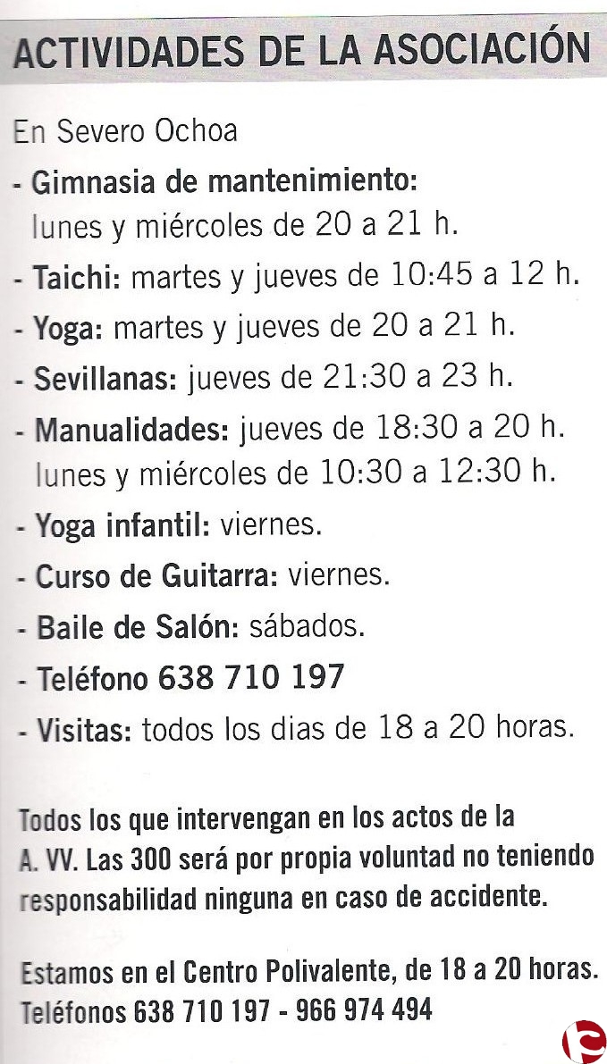 Actividades Asociacion de vecinos de las trescientas.