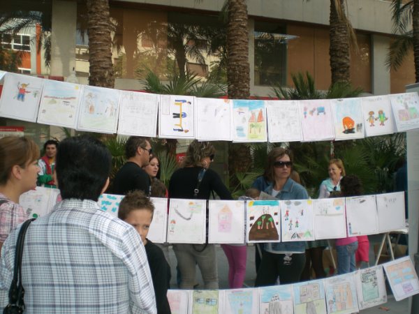 La masiva participación en el encuentro del sábado 17 en la plaza Sagasta fue posible gracias al trabajo y colaboración de las maestras y maestros de los colegíos de Elda, quienes animaron a sus alumnos a plasmar en dibujos su visión sobre la pobreza y los objetivos de desarrollo del milenio. En total se expusieron alrededor de mil dibujos.El trabajo de los docentes mostrando a los más pequeños las pésimas condiciones en que viven millones de personas es una de las tareas más importantes para la plataforma porque el primer paso para cambiar la realidad es conocerla.