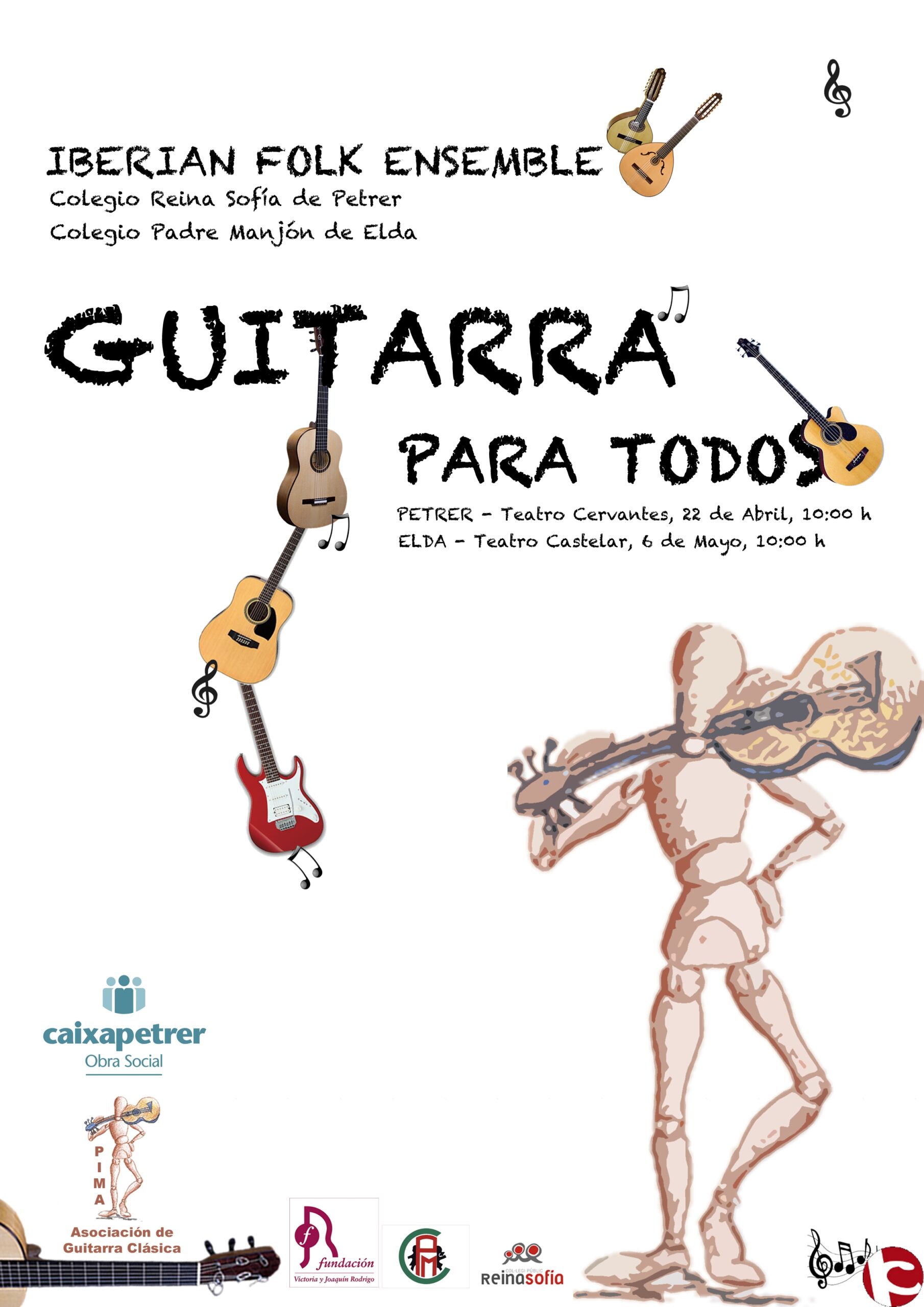 La Asociación de Guitarra P.I.M.A. y la formación musical Iberian Folk Ensemble han logrado introducir entre las asignaturas diarias de Reina Sofía y Padre Manjón “Guitarra para Todos”, proyecto impartido por profesores de la Escuela ECOMUT y de los centros educativos, y al que se han acogido unos 400 niños.