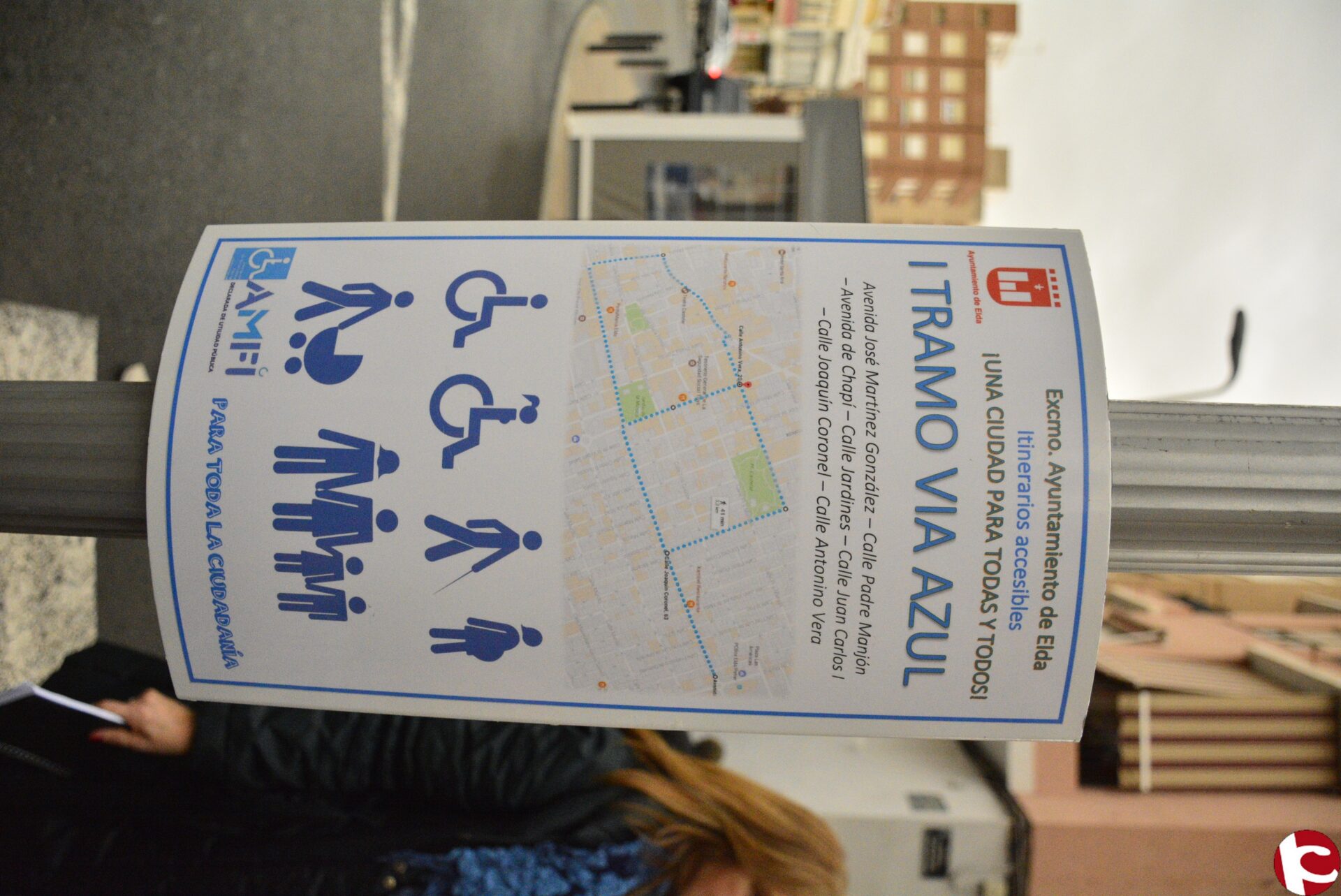 Andrés Molina, presidente de AMFI, ha señalado que éste es el primer tramo de la Vía Azul que se va a señalizar de esta manera, aunque más adelante señalizarán otras vías accesibles de la ciudad. Molina asegura que están trabajando en coordinación con la concejalía de Servicios Públicos asesorándoles sobre la adaptabilidad de calles y espacios públicos, como ya hicieron hace unos días con el rebaje de aceras del centro de salud Marina Española.