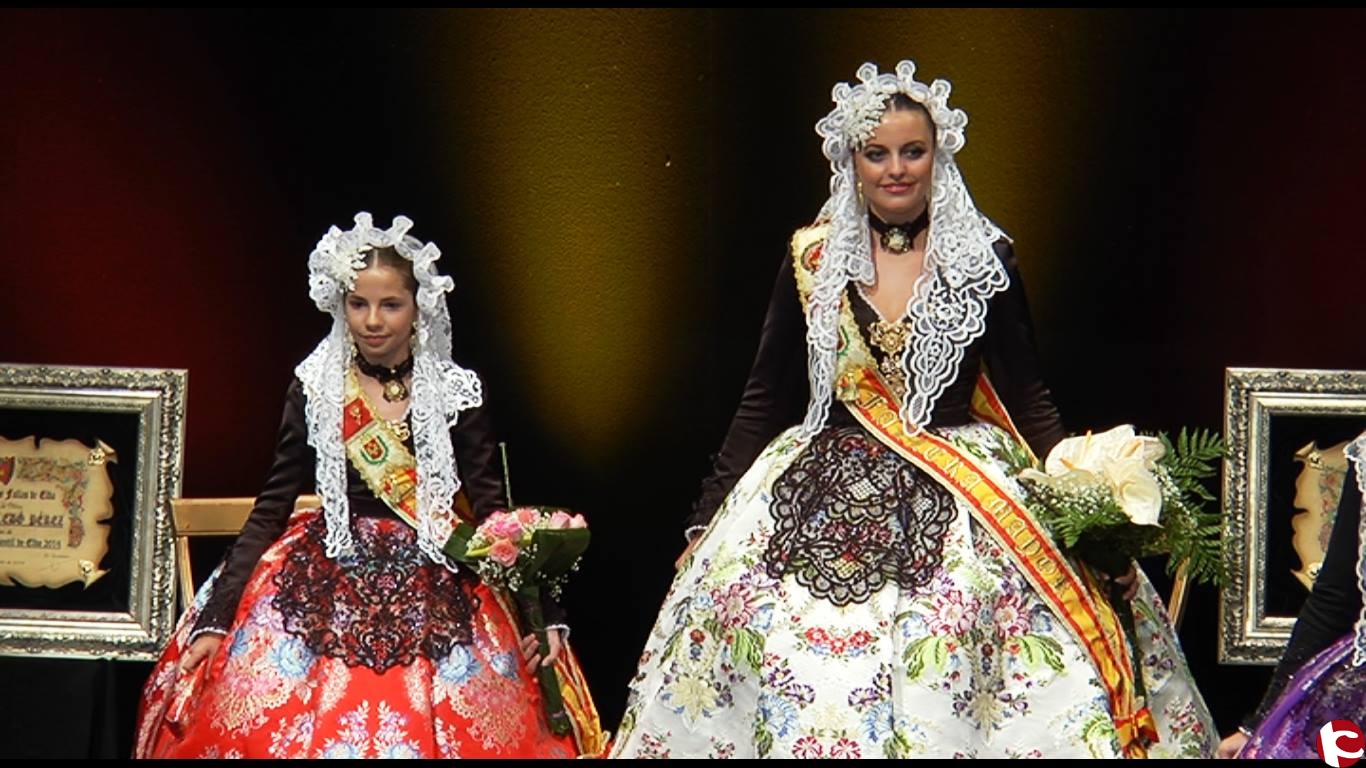 Con la presencia de la presidenta de Junta Central en el escenario y de la alcaldesa de Elda, quienes serían las encargadas de imponer las bandas acreditativas y títulos, en el caso de la presidenta y las insignias de la ciudad, de plata a las damas de honor y de oro para las Falleras, en el de la alcaldesa, la presentadora fue llamando una por una a Alba Olivares García y Zaida Pérez Wider, ambas Damas infantiles y a Natalia Lledó Pérez, Fallera Mayor Infantil. Seguidamente llegaría el turno de Patricia Beltrán Gonzálvez y de María Gisbert Candela, damas mayores. Por último subía al escenario Anabel Rico Pérez, Fallera Mayor de Elda. Una vez todas proclamadas, Chelo Moya, presidenta de Junta Central dedicaba unas palabras de agradecimiento al colectivo fallero, iniciando su intervención con el recuerdo a la labor desarrollada por las Falleras Mayores de 2013 y su corte de honor, para seguir desgranando el rosario de aniversarios que la fiesta celebra este año. Tras las palabras de Chelo, llegaba el turno institucional de la alcaldesa, quien hacía lo propio de estos casos.
