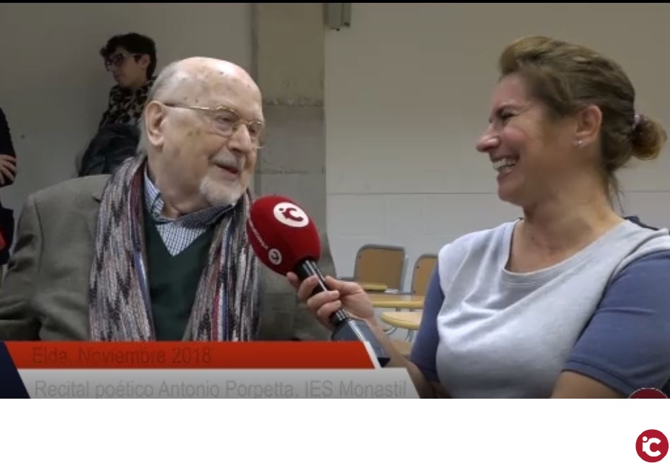 En un nuevo programa de «Hoy hablamos con» asistimos al recital de poesía que ofreció Antonio Porpetta en el I.E.S. Monastil. Este recital, titulado «Lectura de Poesía Arqueológica», estuvo presentado por Juan Carlos Márquez Villora y la lectura de textos fue a cargo de Noemí Catalán Romero.
