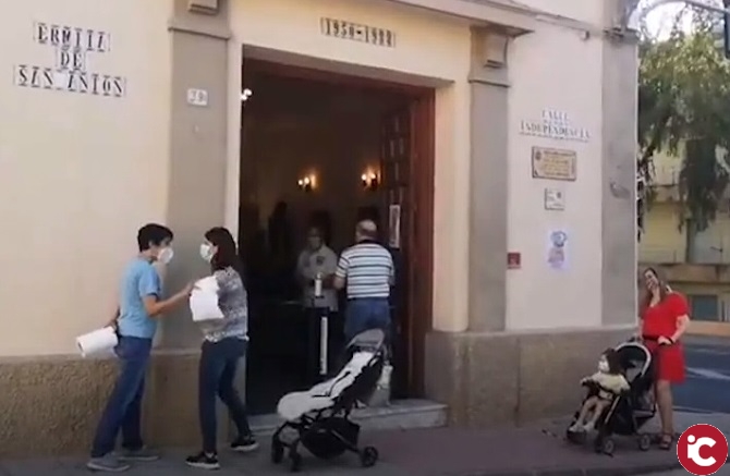 Se realiza un control de aforo realizando una ‘cola’ para acceder a la Ermita, donde también están impuestas las medidas higiénicas exigidas para llevar a cabo con ‘normalidad’ la visita a San Antón.
