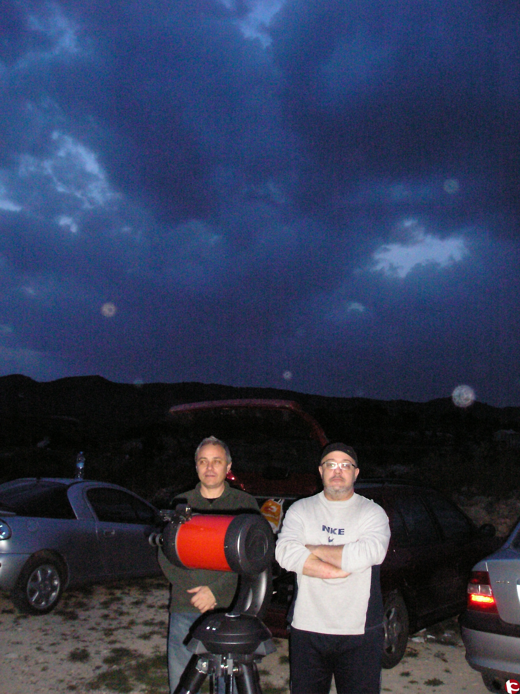 De todas formas nueve personas nos reunimos en el paraje de las Cañadas, con la esperanza de que algunos claros en el cielo nos permitiera realizar varias fotos con la cámara CCD de Juan Payá acoplada al telescopio de 125 mm. de Juan Manuel.