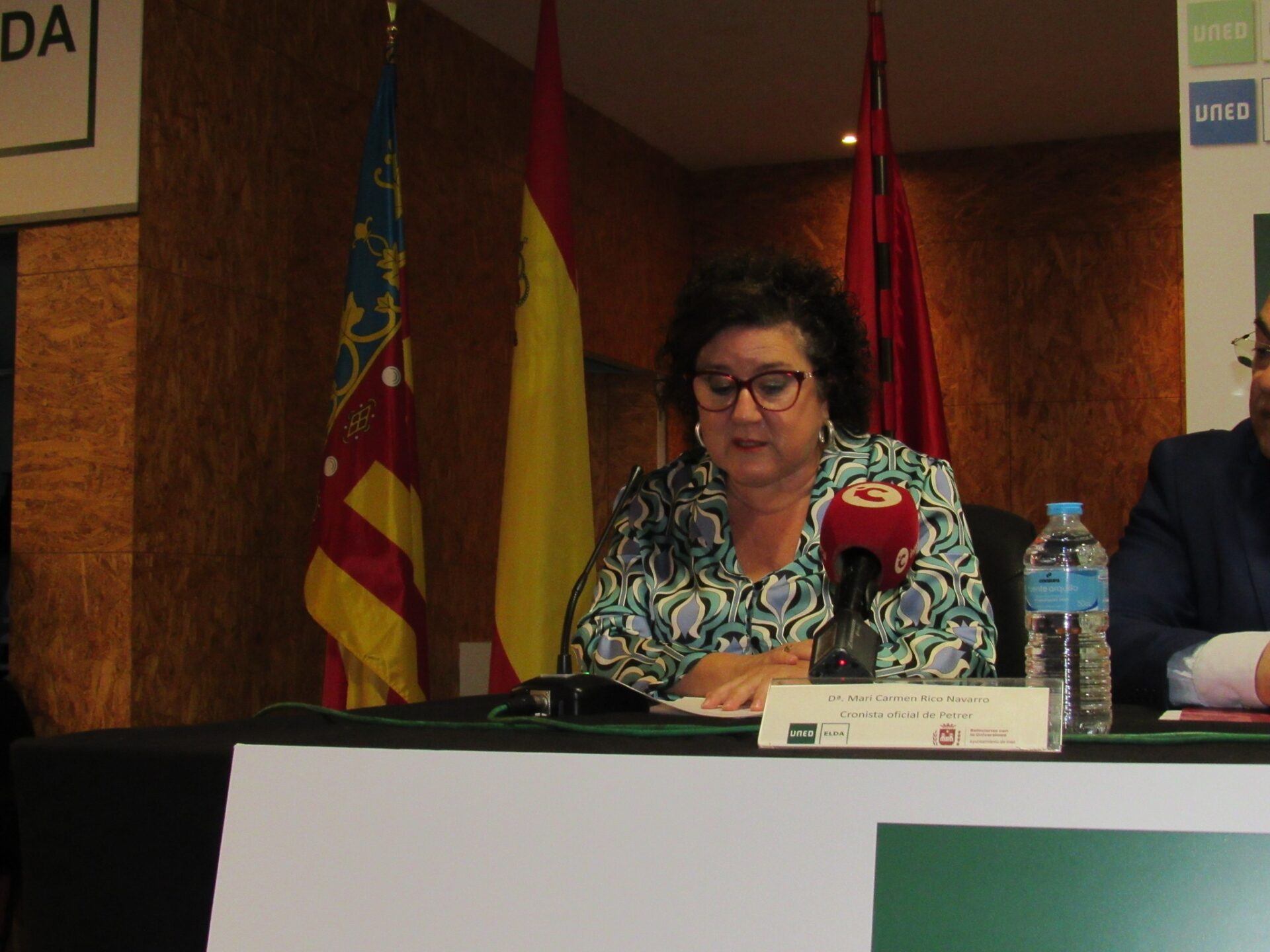 En el acto estuvo acompañada por el Director de la UNED en Elche, Francisco Escudero, la alcaldesa de Petrer, Irene Navarro, el Concejal de Relaciones con la Universidades del Ayuntamiento de Elda, Enrique Quilez, y el Coordinador de la UNED en Elda, José Manuel Guardia, donde se dio la bienvenida a los nuevos alumnos que tiene la UNED en Elda este curso: Acceso a la universidad para mayores de 25 y 45 años, Universidad Abierta, Grados Universitarios, Máster e idiomas, que sin finalizar el periodo de matrícula alcanzan a ser cerca de los 800 alumnos.