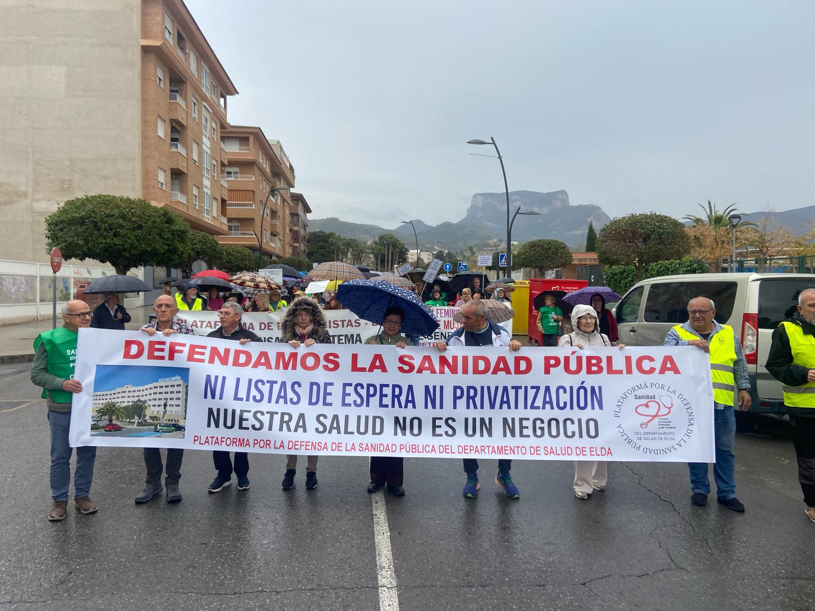 Cientos de personas salieron este sábado a la calle en defensa de la sanidad pública, en una manifestación convocada por la recientemente constituida Plataforma por la Defensa de la Sanidad Pública del Departamento de Salud de Elda. La marcha comenzó a las 11:30 horas desde el IES Paco Mollá, en la avenida Reina Sofía de Petrer, y recorrió diversas calles hasta llegar al Centro de Especialidades de Elda, en la calle Padre Manjón, donde se leyó un comunicado reivindicativo.