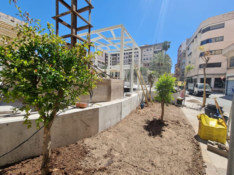En ese sentido, se está llevando a cabo el plantado de cítricos, cerezos ornamentales, níspero, granados, lagerstroemia, koelreuteria y diversos arbustos como romero y lavanda en los alrededores de toda la plaza, justo debajo de las nuevas pérgolas de madera que ofrecerán espacios de sombra durante los meses de verano.