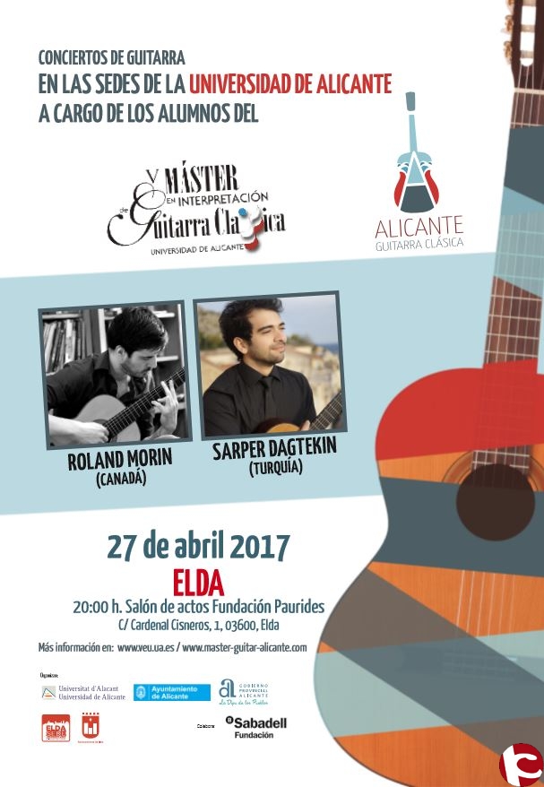 Mañana tendremos la oportunidad de disfrutar del primer concierto del Máster de Guitarra clásica de la Universidad de Alicante en la ciudad de Elda a cargo de Sarper Dagtekin (Turquía) y Roland Morin (Canadá).