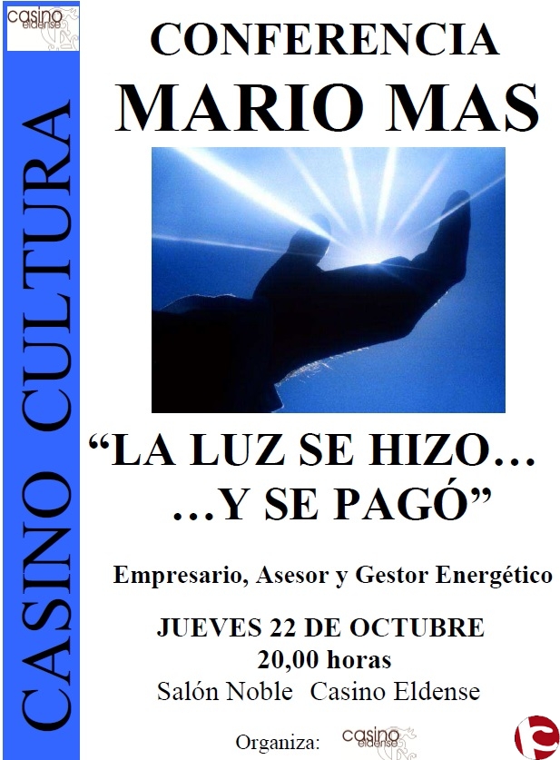 Mario Más Fenollar, joven empresario, asesor y gestor energético, ofrecerá su visión y atenderá a los presentes en la luz se hizo, y se pagó.