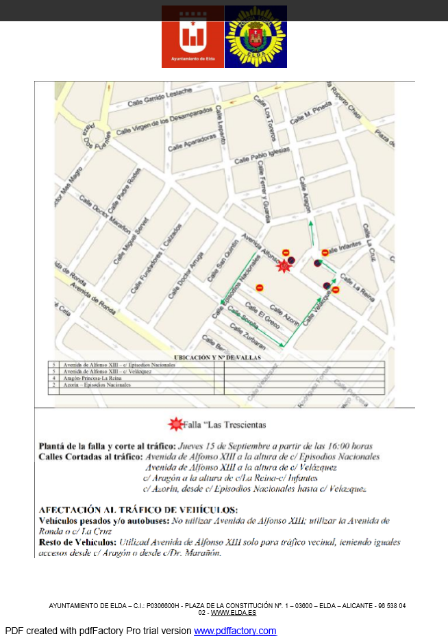 Os dejamos la relación de mapas con la información de los cortes de calles para estas Fallas 2016 de Elda