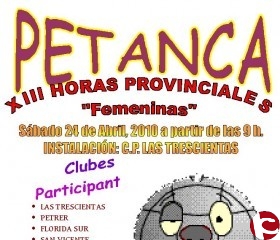 El sábado 24 de Abril, desde las 9 de la mañana, se celebran las XII horas provinciales de Petanca Fenmenina en las instalaciones del Club de Petanca «las 300» de Elda.