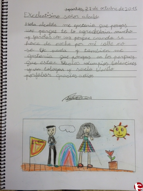. Y SE LES OCURRIÓ LA IDEA DE ESCRIBIR UNA CARTA A NUESTRO ALCALDE, INVITÁNDOLE A ASISTIR A UNA ASAMBLE A DE CLASE PARA PREGUNTARLE SOBRE ALGUNOS ASUNTOS QUE LES GENERABAN PREOCUPACIÓN ACERCA DE SU PUEBLO, ELDA.