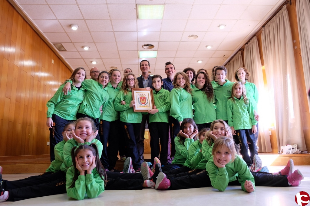 Rubén Alfaro, alcalde de Elda, ha recibido en el salón de plenos a un total de 24 integrantes del Gimnasio Espadas, niños, niñas, mamas y monitores, que han participado recientemente en el Campeonato de Europa de Fitkid celebrado en El Palau Olímpic de San Jordi (Badalona).