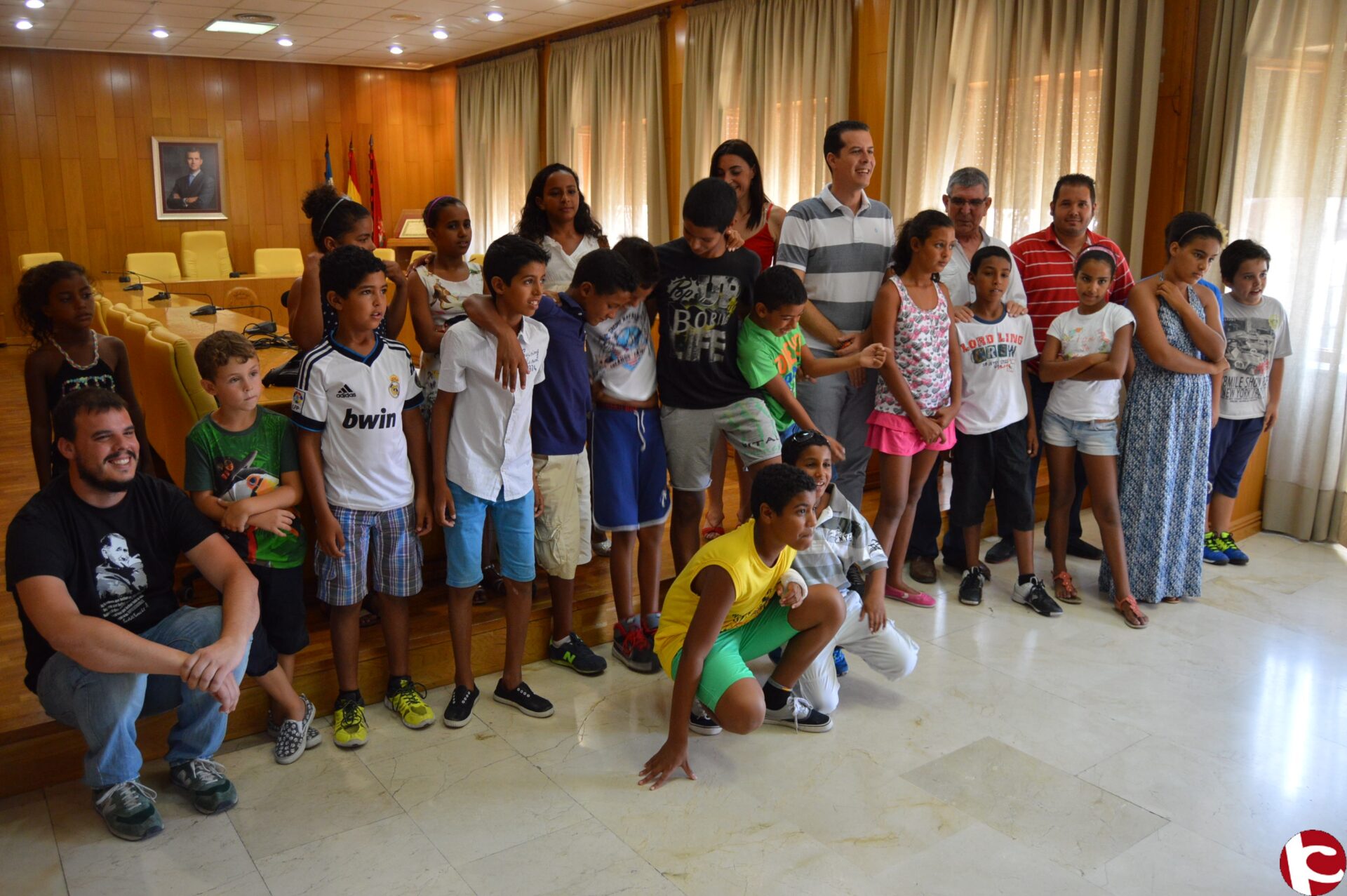 El alcalde de Elda, Rubén Alfaro, y la concejala de Solidaridad, Nieves López, han recibido esta mañana en el salón de plenos del Ayuntamiento a los más de veinte niños saharauis que están pasando el verano en Elda y comarca, los cuales han estado acompañados de sus familiares de acogida. También han asistido los presidentes de la asociación Amigos del Pueblo Saharaui de la CV y de Elda, Manuel A. Cascales e Iván Egido, respectivamente.