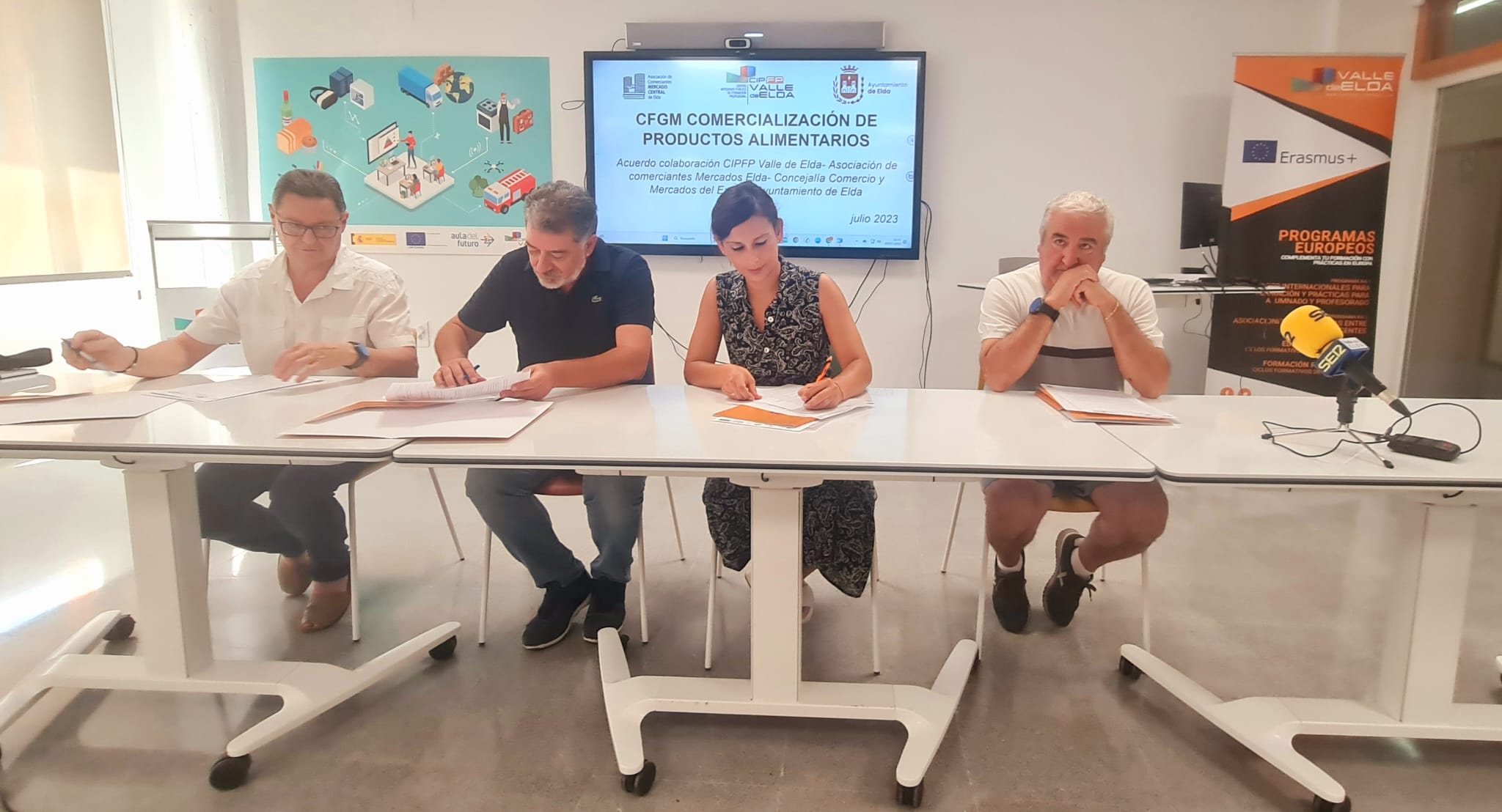 El Ayuntamiento de Elda, las asociaciones de comerciantes y el centro educativo han firmado esta mañana un acuerdo de colaboración con el que, entre otros objetivos, se pretender facilitar el relevo generacional e impulsar la empleabilidad de las y los jóvenes que están estudiando esta especialidad de Formación Profesional.