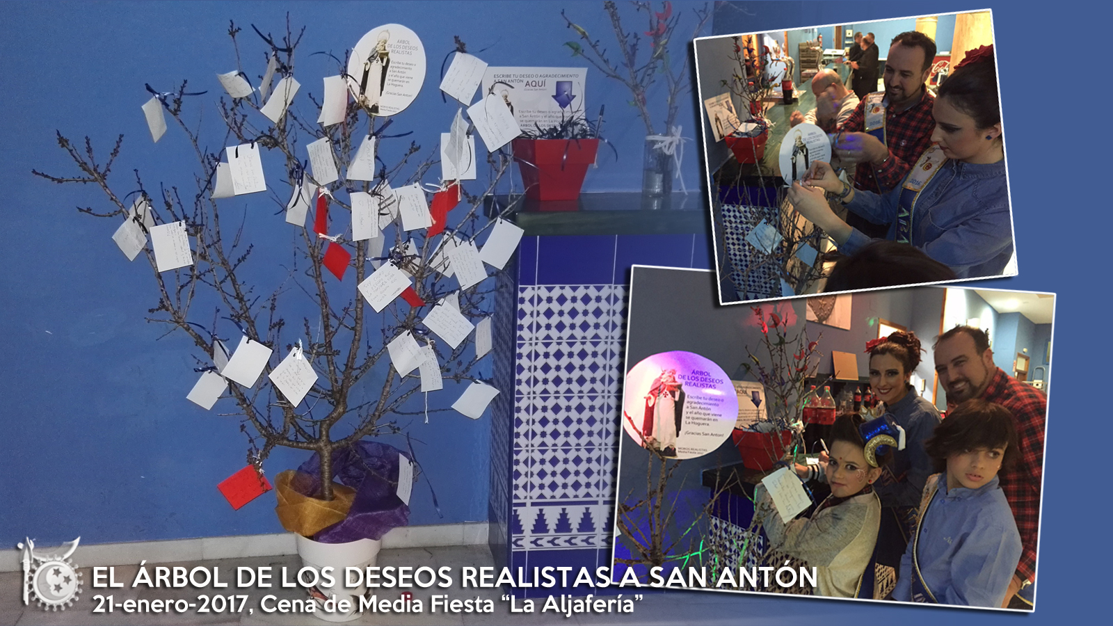 En la cena de la pasada Media Fiesta hubo una sorpresa muy especial en la Comparsa de Moros Realistas de Elda. La comisión encargada de la organización del acto puso a disposición de la familia Realista el conocido «Árbol de los Deseos Realistas a San Antón»