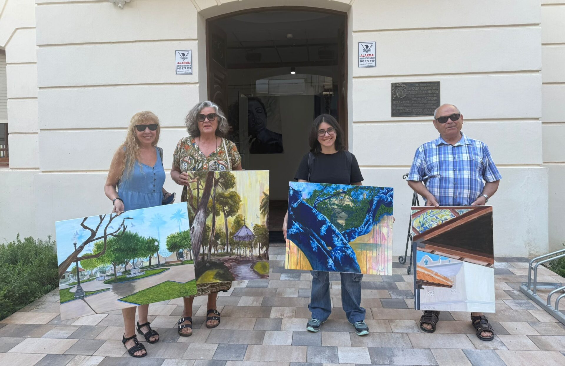 Los trabajos realizados por el alumnado del curso al aire libre impartido por el pintor eldense pueden contemplarse en establecimientos situados en varias calles de la ciudad, como Juan Carlos I y Antonino Vera.