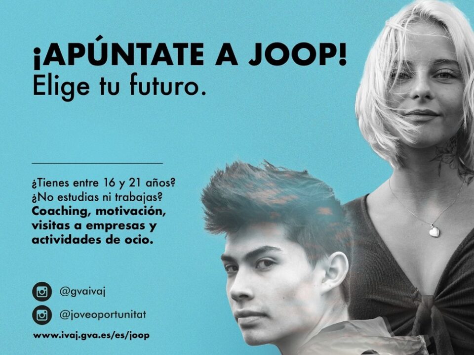 ‘JOOP’ es un programa de segunda oportunidad diseñado por el Instituto Valenciano de la Juventud (IVAJ), y financiado por el Fondo Social Europeo. En Elda se coordina a través de la Concejalía de Juventud, donde pueden realizarse las inscripciones, que también se pueden hacer en la web del IVAJ (www.ivaj.gva.es/es/joop).