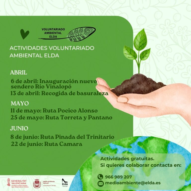 Para más información sobre las actividades y cómo participar, los interesados pueden contactar con la Concejalía de Medio Ambiente Natural o visitar la página web del voluntariado https://voluntariadoambientalyanimalelda.es/ .