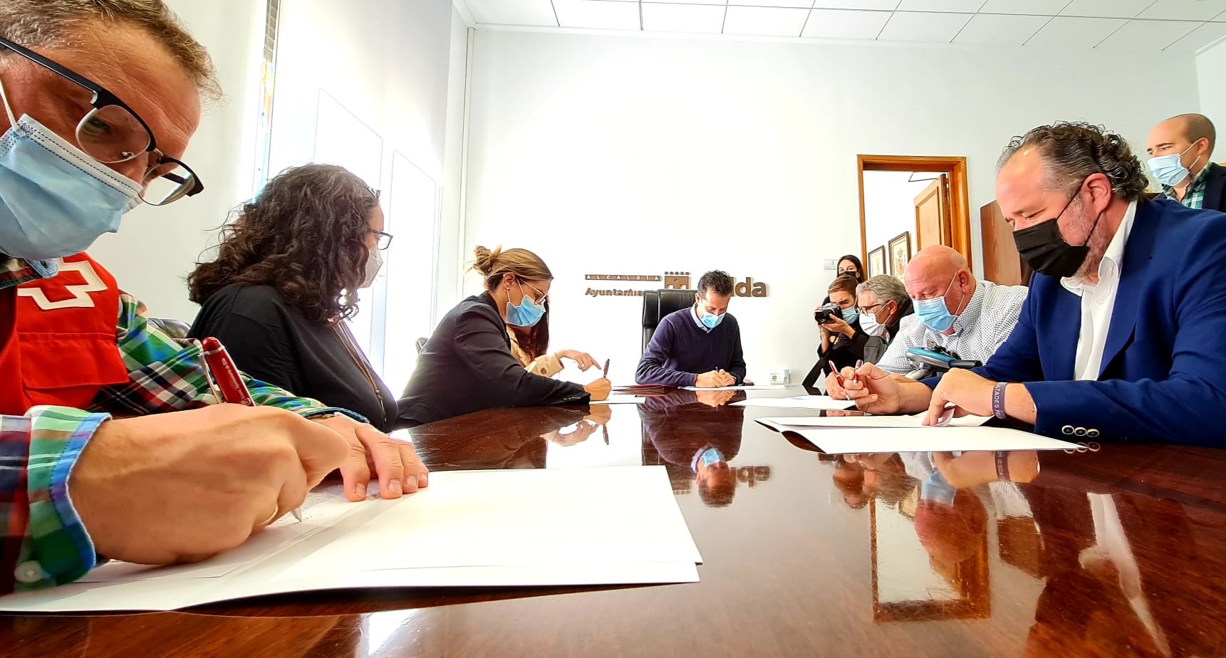 El alcalde de Elda, Rubén Alfaro, ha firmado esta mañana los convenios nominativos con las cuatro ONG y asociaciones que colaboran con el Instituto Municipal de Servicios Sociales de Elda (IMSSE): Cruz Roja, Cáritas, AMFI y Fesord. El regidor eldense, acompañado de la concejala de Bienestar Social, Alba García, ha afirmado que “esta firma refleja nuestra apuesta por ayudar a las personas y familias de nuestra ciudad y la unidad de todos los actores implicados en esta labor”.