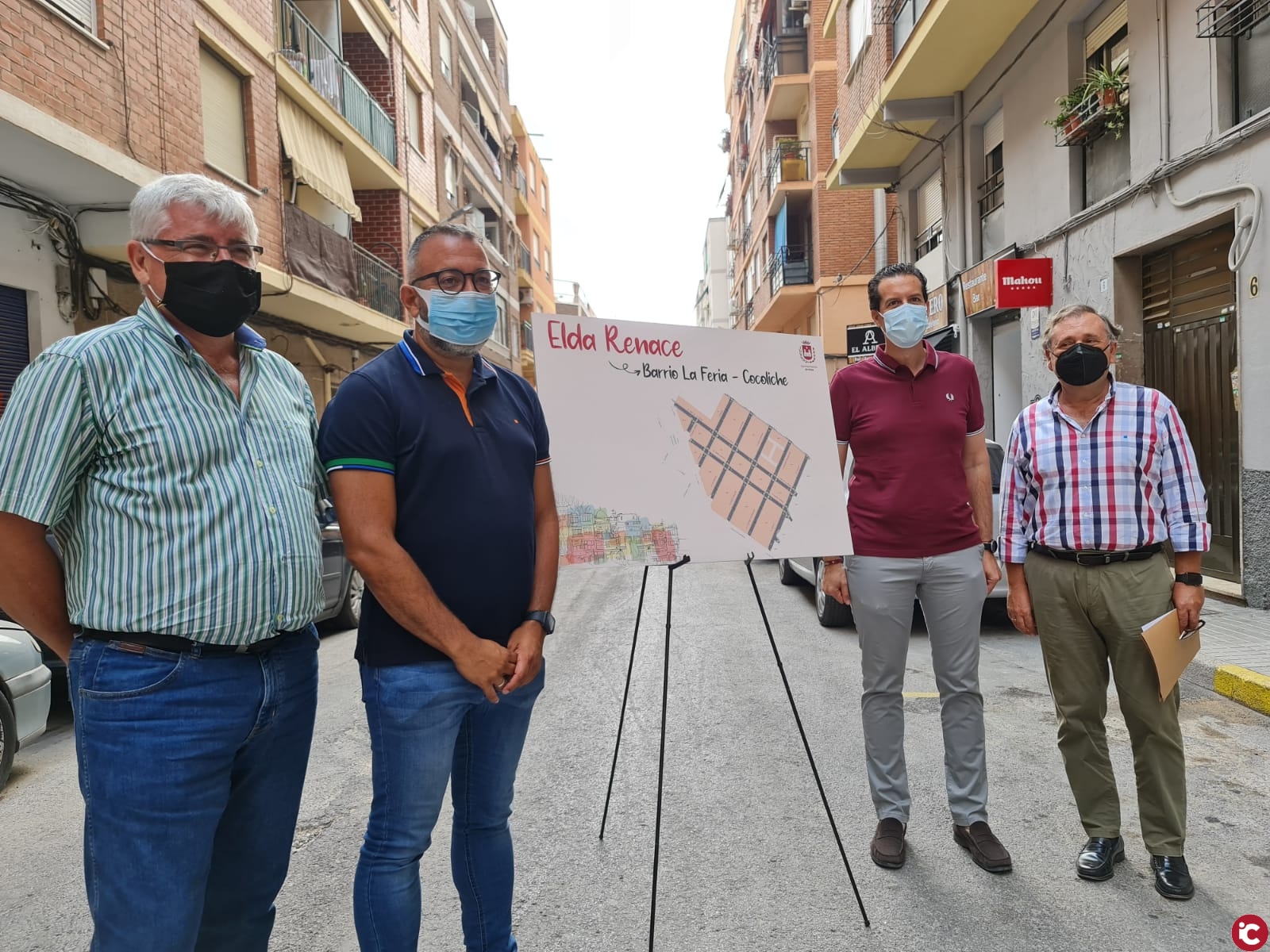 El alcalde de Elda, Rubén Alfaro, ha presentado hoy el proyecto de reurbanización del barrio de La Feria-Cocoliche, una inversión incluida en el Plan Elda Renace. El regidor eldense ha estado acompañado por el concejal de Servicios Públicos Sostenibles e Inversiones, José Antonio Amat; el ingeniero municipal Francisco Bellot; y Sergio Torregrosa, ingeniero técnico de obras públicas que ha realizado el proyecto.