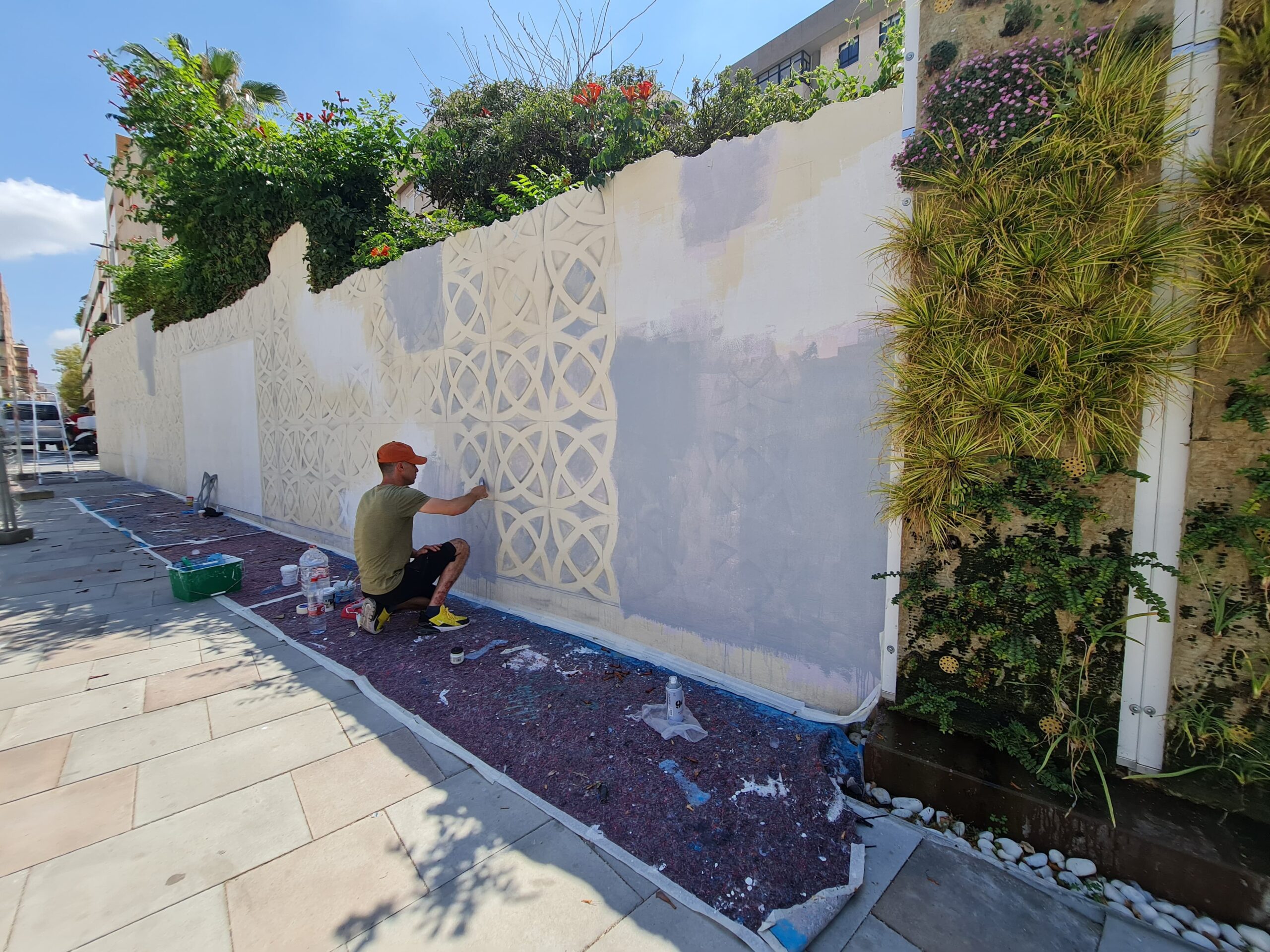 02 de agosto de 2023– La Concejalía de Espacio Público del Ayuntamiento de Elda ha comenzado los trabajos para la creación de un nuevo mural con estilo de trampantojo en la calle Hilarión Eslava, junto al jardín vertical de la Plaza del Zapatero, con el objetivo de integrar la edificación existente de principios del siglo XX a través de un estilo de arte mudéjar.