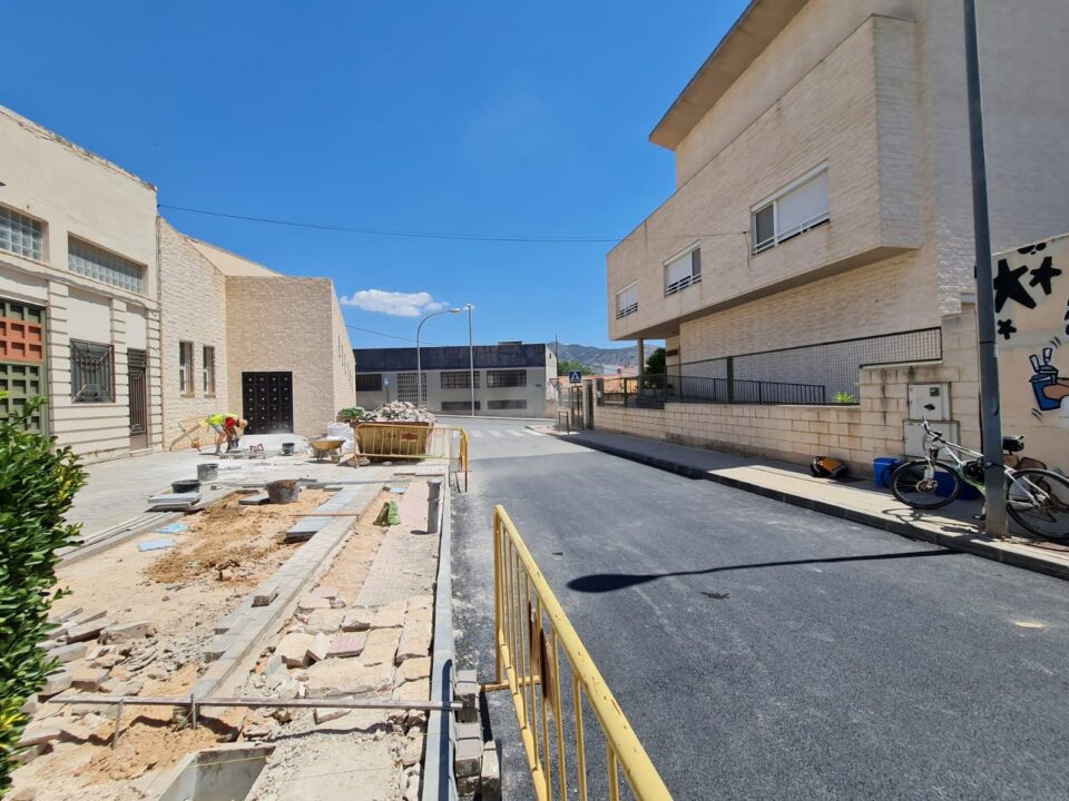 Por su parte, en la calle La Parroquia del barrio Estación se ha procedido al levantamiento por medios mecánicos del pavimento existente, ya que presentaba un ligero desnivel en su zona central, justo por donde transitan los vehículos en su paso hacia la avenida de Sax. En este caso, el desperfecto de la calzada estaba producido por la filtración de agua potable, a diferencia de la calle Francisco Laliga.