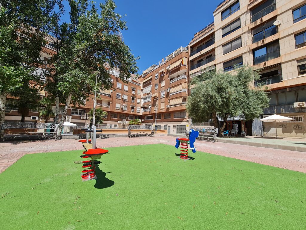 El Ayuntamiento de Elda mejora la accesibilidad y crea una nueva zona de juegos infantiles en la plaza situada junto al Instituto Nacional de la Seguridad Social de la calle Manolita Candel