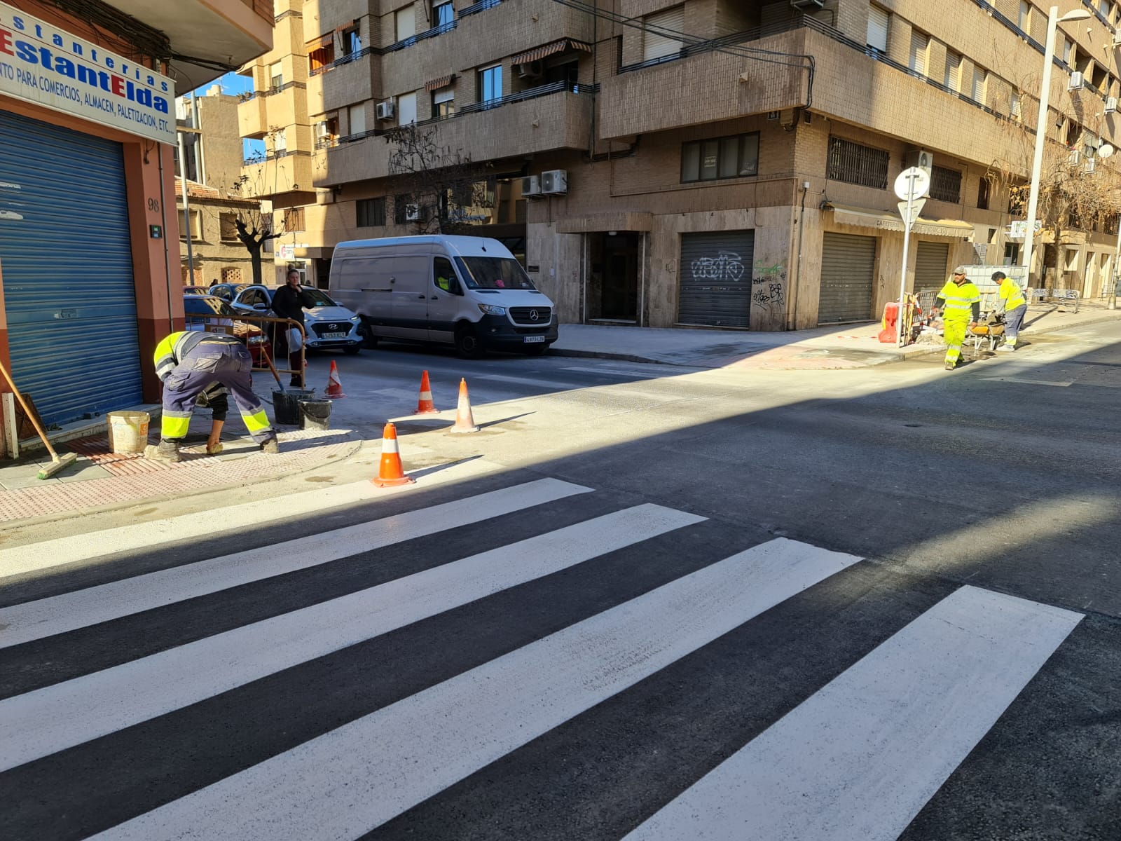 22 de diciembre de 2022.- La Concejalía de Inversiones y Servicios Públicos Sostenibles del Ayuntamiento de Elda ultima las obras para la mejora de la accesibilidad y asfalto en las calles San Crispín y Ramón Gorgé, en el tramo comprendido entre las calles Pablo Iglesias y San Ignacio de Loyola, con el objetivo de favorecer el paso de los viandantes y los vehículos de estas concurridas vías del centro de la ciudad.
