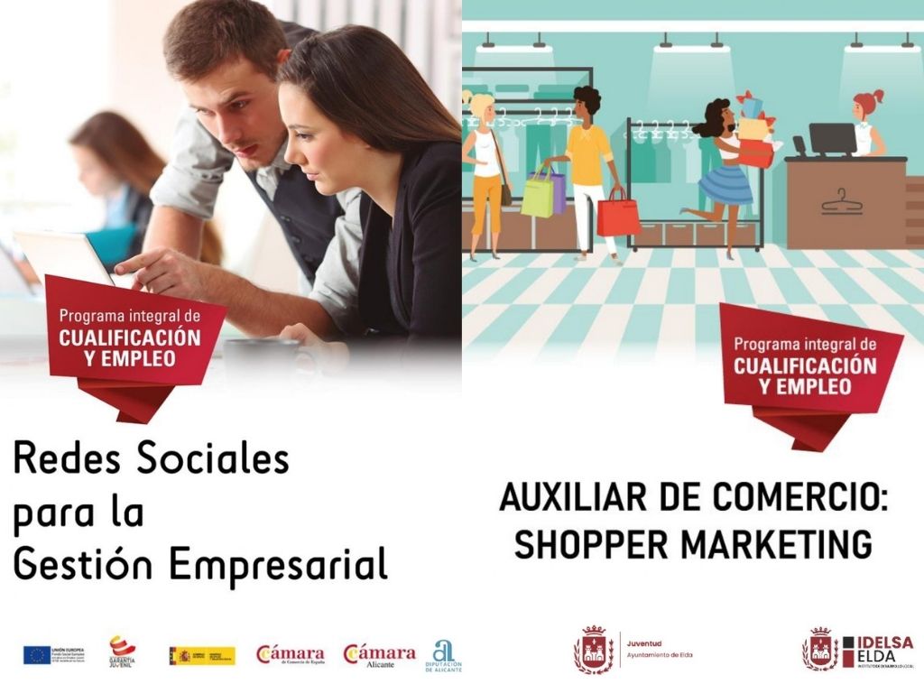 El Ayuntamiento de Elda, a través de Idelsa y de la Concejalía de Juventud, ofrece dos cursos de formación gratuitos que tendrán lugar entre los meses de marzo y junio y que la Cámara de Comercio de Alicante ha puesto en marcha para jóvenes de entre 16 y 29 años que estén inscritos en el Plan de Garantía Juvenil.