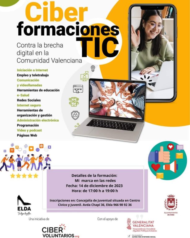 7 de diciembre de 2023.- El Ayuntamiento de Elda, a través de las Concejalías de Juventud, Educación y Brecha Digital, está ofreciendo desde el mes de octubre talleres de carácter gratuito que, bajo el nombre ‘Ciber formaciones TIC’, incluyen formación específica para aprender a realizar trámites online, como obtener el Certificado Digital, aprender a buscar empleo a través de internet o realizar un uso seguro de internet y detectar noticias falsas o ‘fake news’.