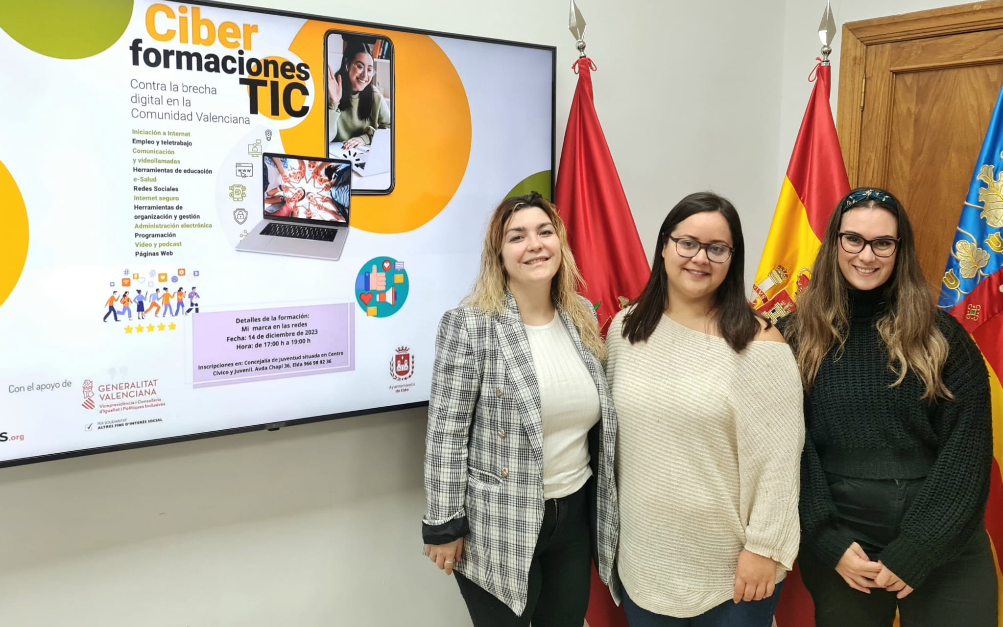 La concejala de Juventud, Anabel García, acompañada por la edil de Educación, María Gisbert, y la técnica de Juventud, Sara Pérez, ha explicado que «hemos ofrecido a los institutos de la ciudad este curso para que el alumnado pueda beneficiarse de los mismos. El primer centro será el IES La Torreta y los talleres se ofrecerán en la ‘ciberteca’ ubicada en el Centro Cívico y Juvenil».