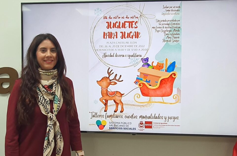 23 de diciembre de 2022.- El Ayuntamiento de Elda, a través de la Concejalía de Igualdad, organiza ‘Ni de niño ni de niña Juguetes para jugar’. Alba García, concejala del área, ha presentado esta mañana la actividad, “como promoción de la campaña de juguetes no bélicos y no sexistas que realizamos todos los años desde la Concejalia de Igualdad y Mujer y el Consejo sectorial de la mujer y por la igualdad. Además, este año recuperamos los talleres infantiles en la Plaza Castelar”.