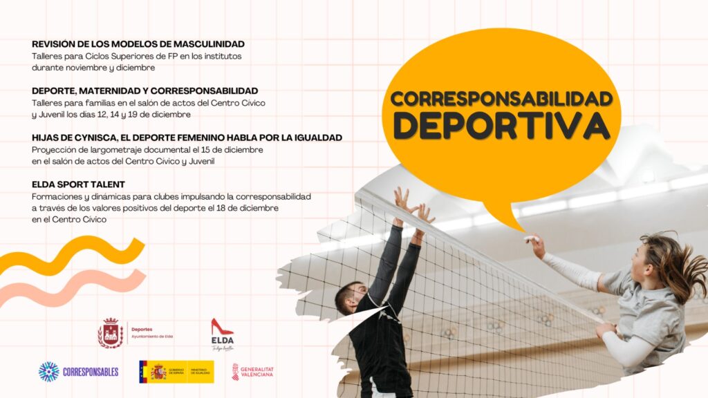 Además, para los clubes deportivos se ha preparado el largometraje ‘Hijas de Cynisca, el deporte femenino habla por la igualdad’ que se proyectará en el Centro Cívico el 15 de diciembre, además de formaciones a través de los valores positivos del deporte bajo el título ‘Elda Sport Talent’, el 18 de diciembre también en el Centro Cívico y Juvenil a las 18.00 horas.