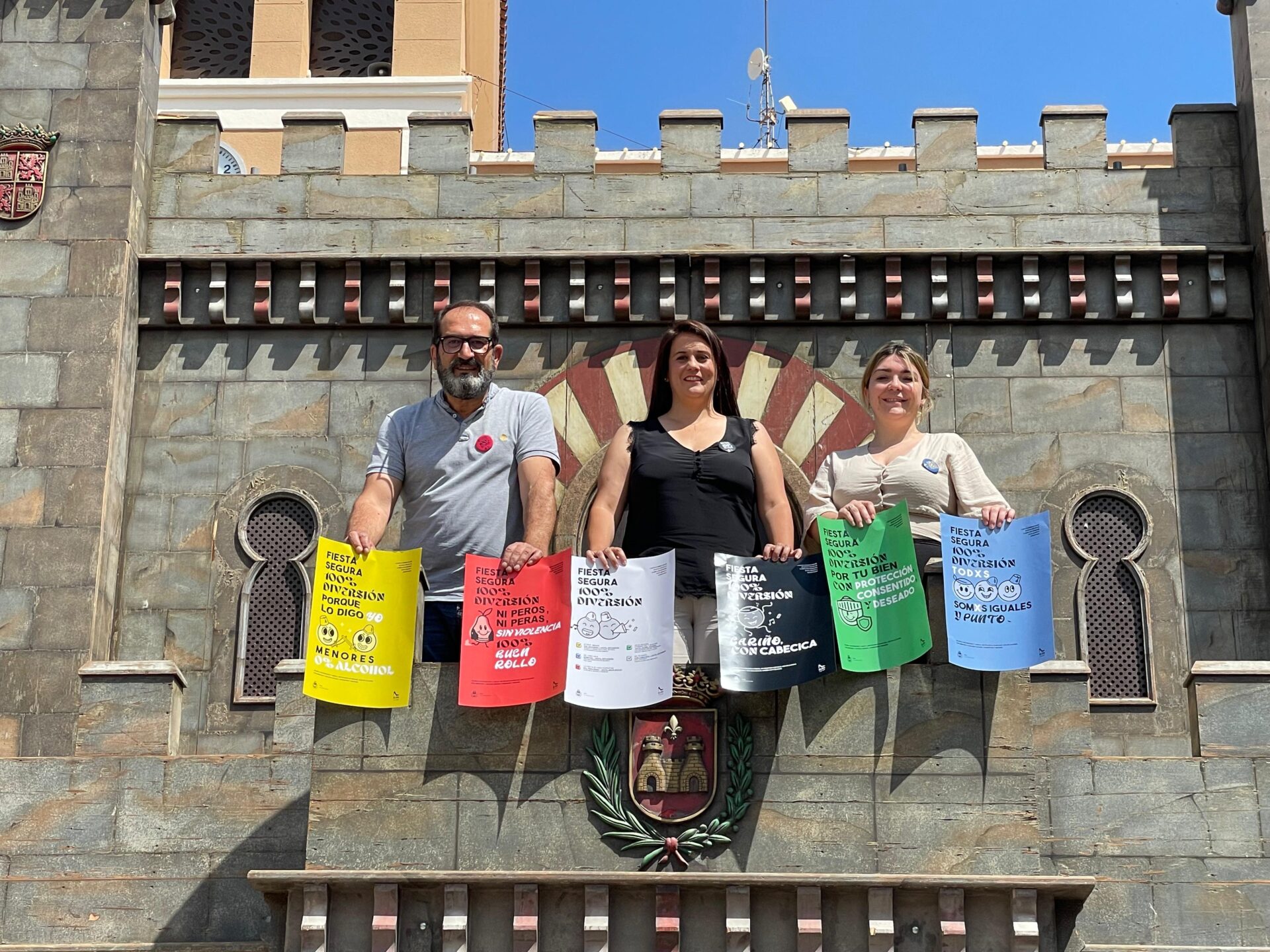 La concejala de Salud, Lorena Pedrero, quien ha estado acompañada por la edil de Juventud, Anabel García, y el concejal de Bienestar Social, David Guardiola, ha explicado que «el lema de la campaña es claro: ‘Fiesta Segura, 100% diversión’ y con un mensaje centrado en los más jóvenes. Es una campaña con los colores corporativos de todas las comparsas y que emplea palabras que dirían nuestros padres, pero concienciando a los adolescentes de nuestra ciudad».