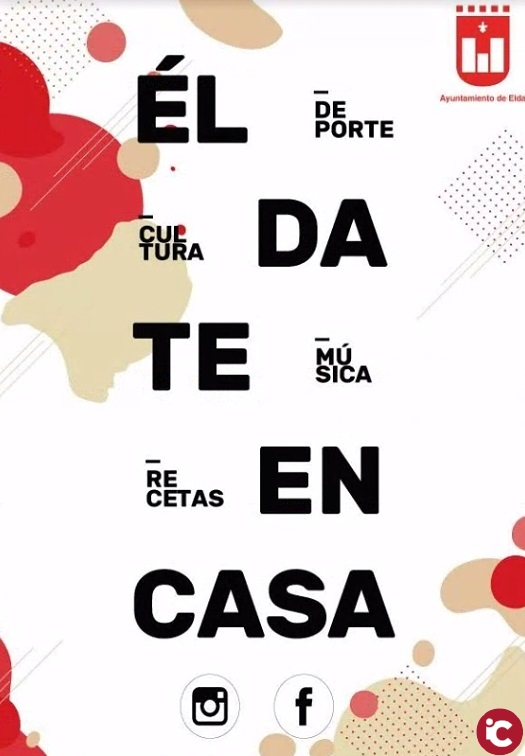 El Ayuntamiento de Elda, a través de las Concejalías de Cultura y Teatro, Fiestas, Turismo, Relaciones con las Universidades y Juventud,ha preparado Éldate en casa, una