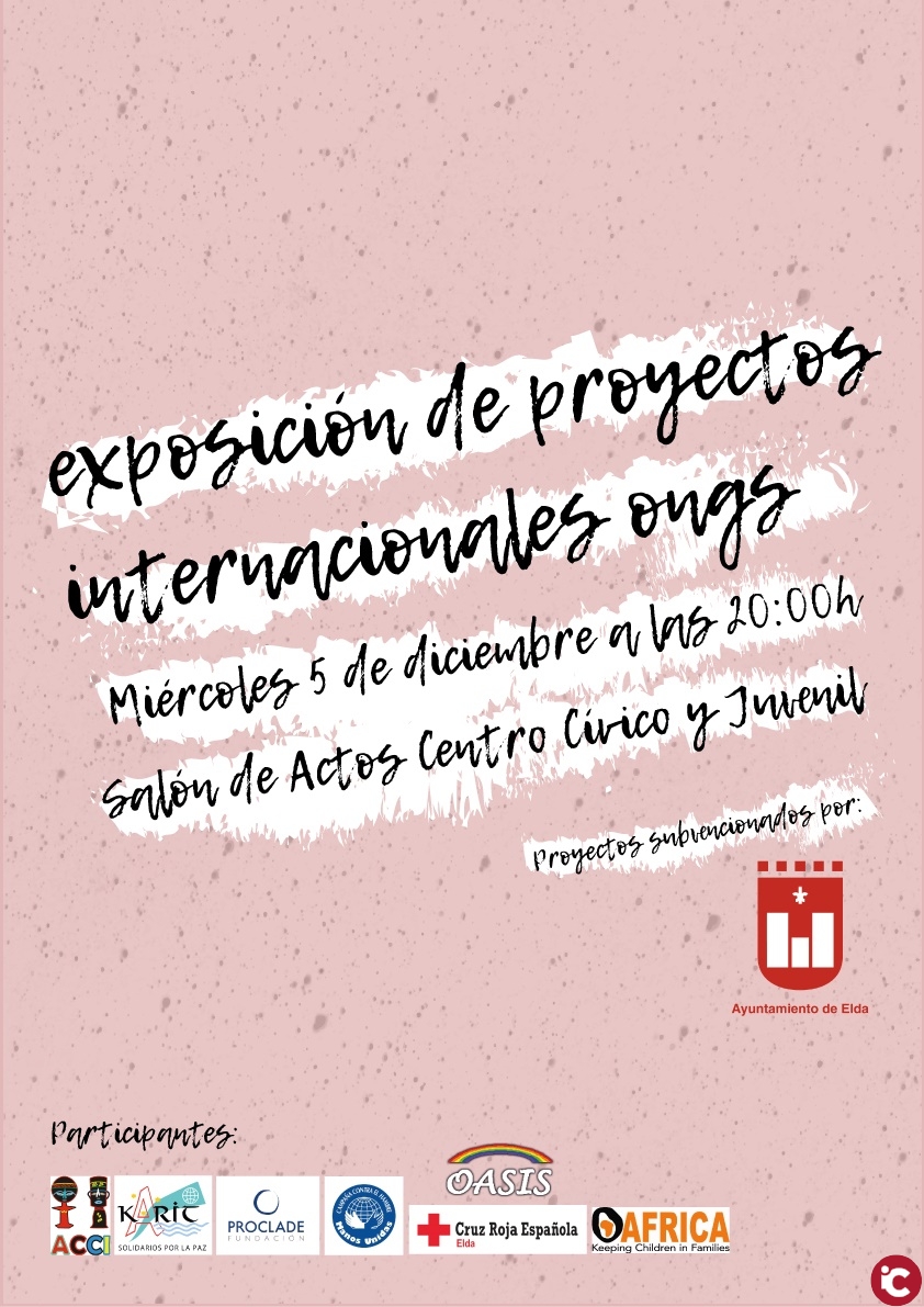 El Ayuntamiento de Elda, desde la concejalía de Solidaridad, ha anunciado que el próximo miércoles, 5 de diciembre, el salón de actos del Centro Cívico y Juvenil acogerá un acto dedicado a proyectos de cooperación internacional.
