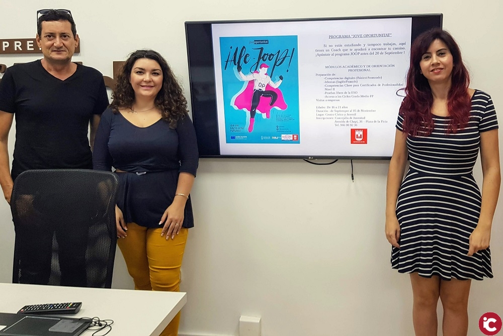 El Ayuntamiento de Elda ha reabierto la inscripción en el programa de orientación juvenil Jove Oportunitat (JOOP), que comenzó en julio. Las concejalas de Juventud, Anabel García, y de Bienestar Social, Lorena García, han presentado esta mañana la reapertura del programa JOOP (Jove Oportunitat) cuyo objetivo es reorientar el futuro de jóvenes de entre 16 y 21 años que han abandonado sus estudios para que regresen al sistema educativo y obtener así una FP de grado medio o un certificado de profesionalidad que les permita incorporarse al mercado laboral.