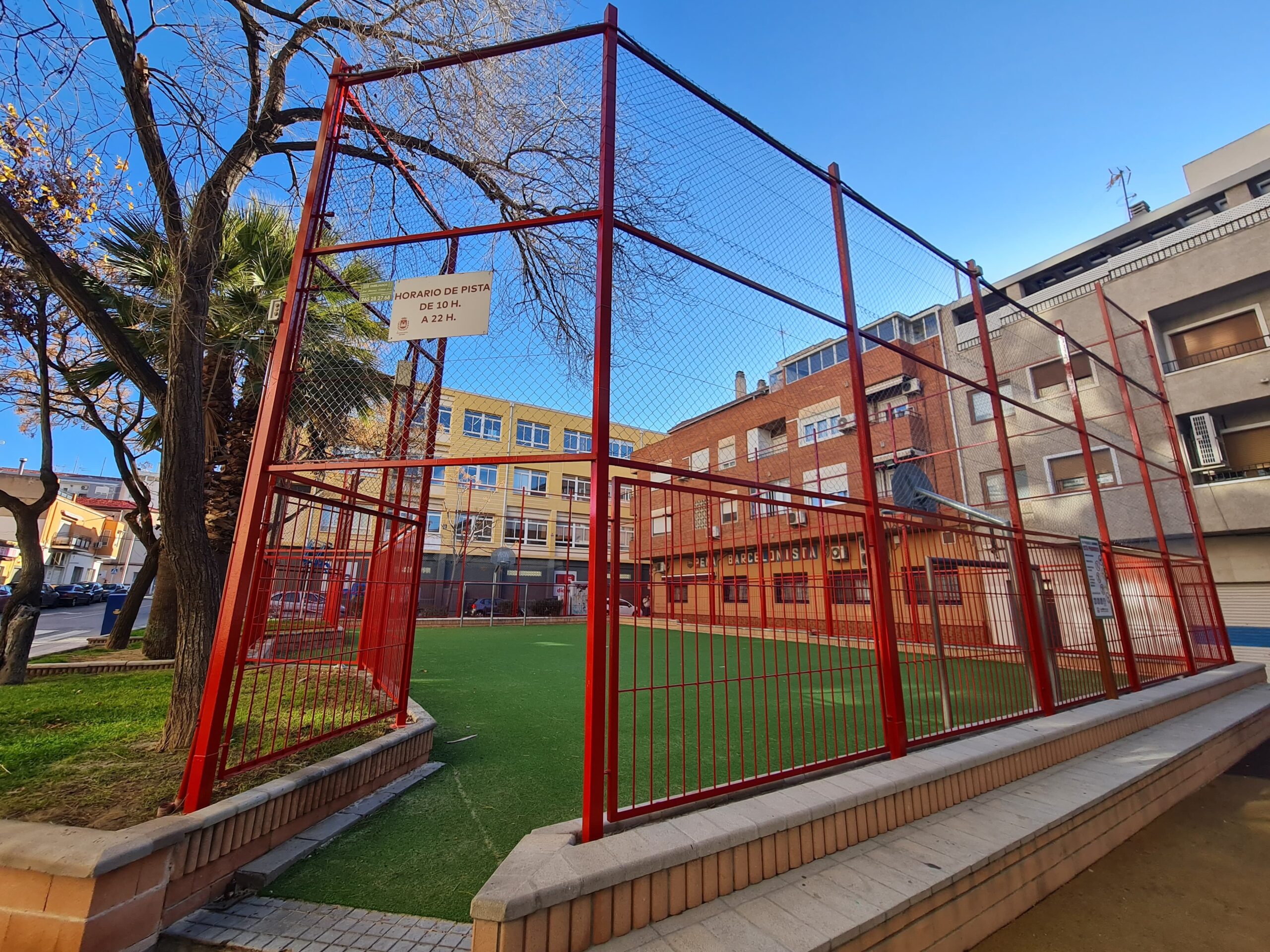 Además, se ha renovado la malla metálica de la pista que se encontraba suelta por el impacto de los balones, instalando un nuevo trenzado de seguridad más firme que evite que los balones puedan escaparse y afectar al resto de usuarios de esta parque de la Cruz Roja, ya que anexa a la pista se encuentra una zona de juegos infantiles muy utilizada por los niños y niñas más pequeños a diario.
